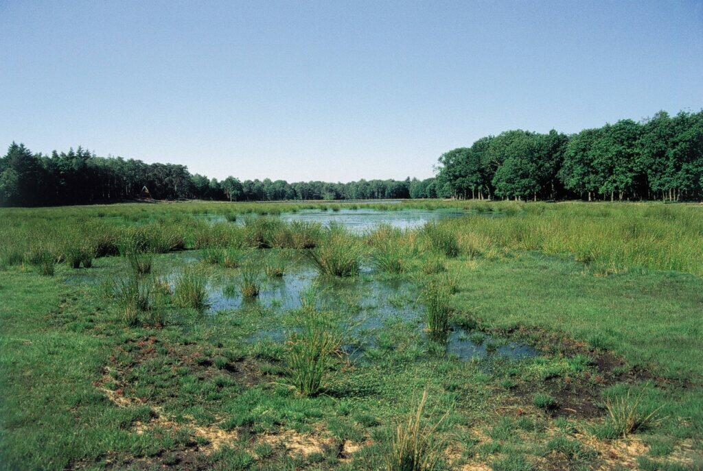 Een afwisselende route die eerst langs het wasmeer loopt en die later dwars door het bos slingert. Je kunt een kijkje nemen bij het uitzichtpunt over het ven met bijzondere planten als pitrus, veenpluis, witte snavelbies en kleine zonnedauw.