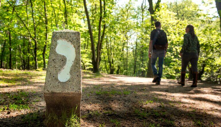 De kenmerkende paaltjes met voetafdruk van het Voetstappenpad.