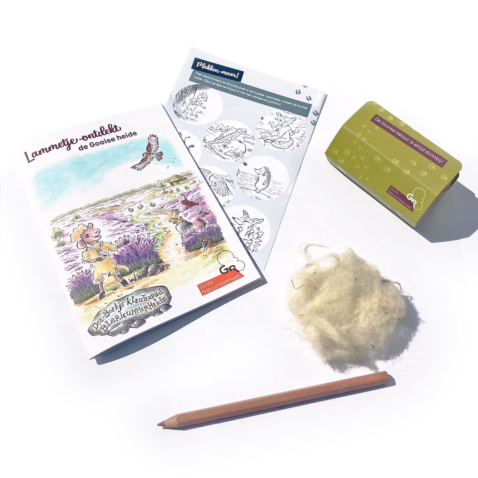 Het kleuterpad “Lammetje ontdekt de Gooise heide” is speciaal aangelegd voor kinderen in de leeftijd 3-6 jaar. Het doe-pakketje bestaat uit een boekje en diverse speelse onderdelen. Bij het lopen van het pad zijn hiermee meerdere leuke opdrachten te doen. Lees het verhaal voor en ontdek samen met Lammetje de Blaricummerheide!
